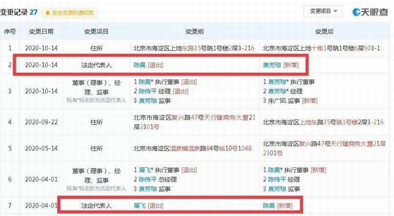▲天眼查网站显示,优胜教育公司法人变更记录。截图