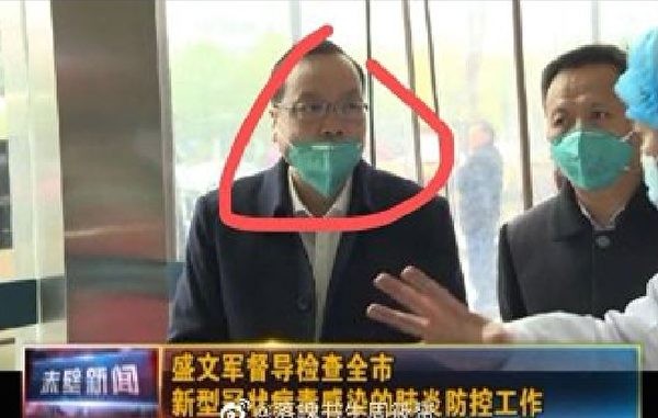 湖北赤壁市委书记盛文军戴口罩“违规” 形同虚设闹笑话